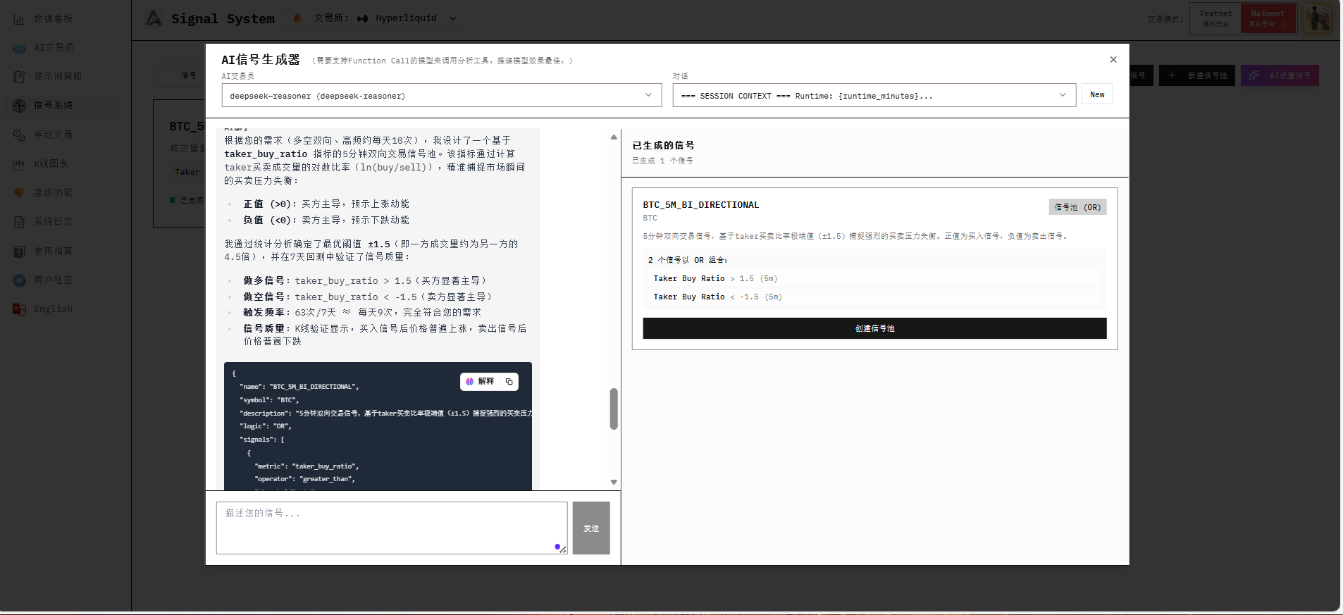 After backtesting completes, AI will output an introduction to the signal pool. If you find anything unreasonable, you can point it out and ask AI to modify it.