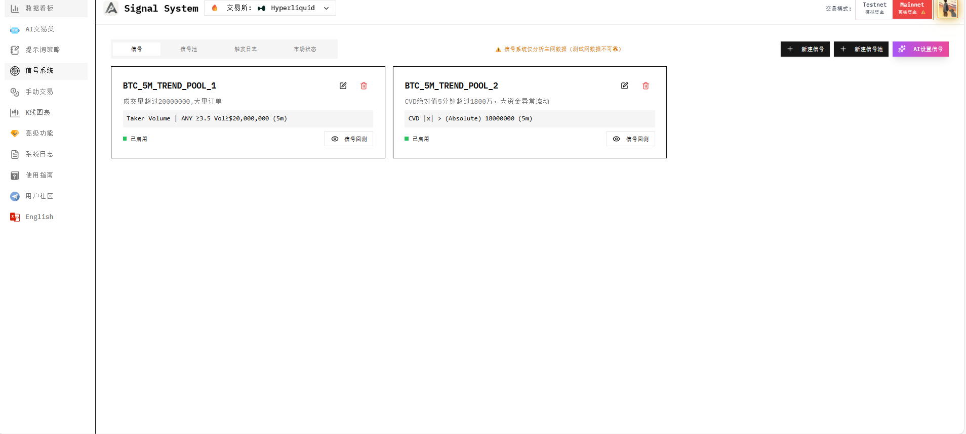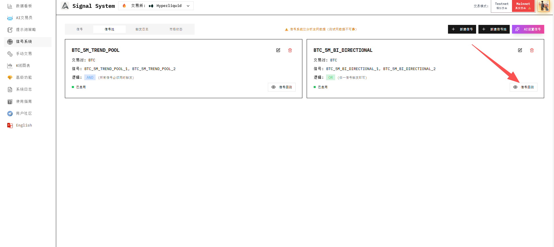 Finally, don't forget to go to the AI Trader interface to select the signal pool you need and save.