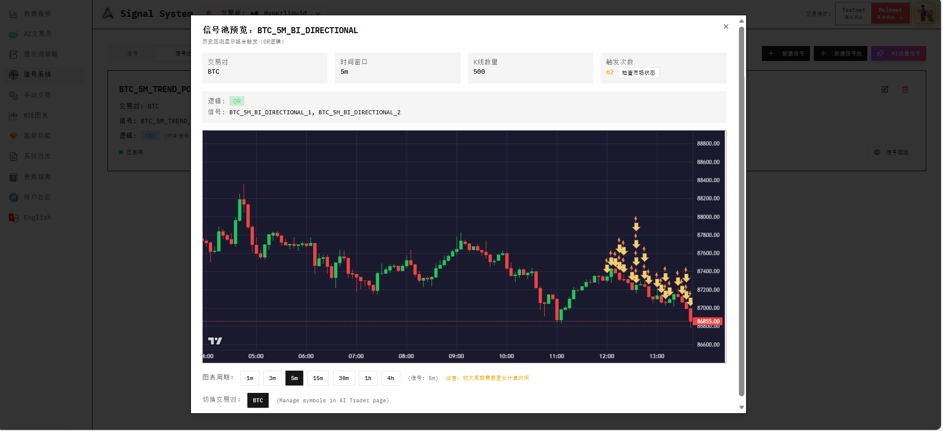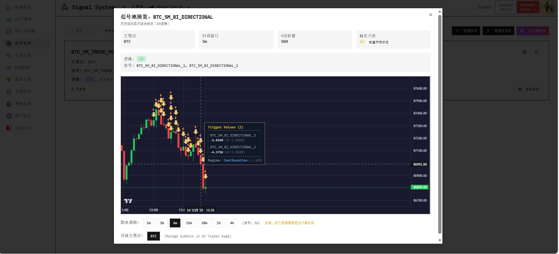 After successful creation, close the AI Signal Generator, then click Signal Backtest to verify if it's reasonable.