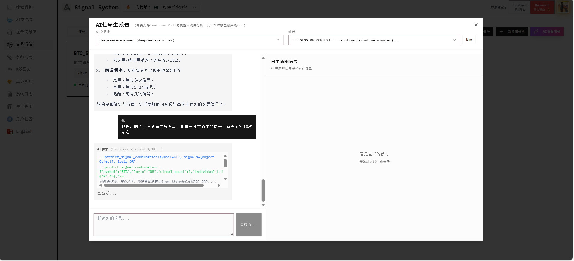 After you send these requirements to AI, it will start backtesting and adjusting the signal values in the signal pool to meet your needs.